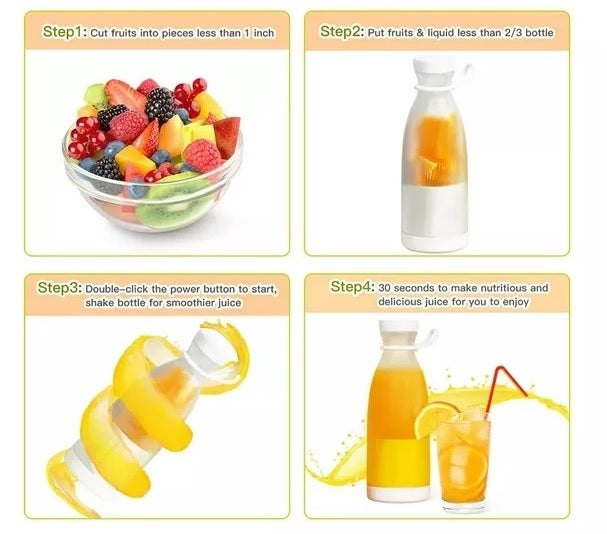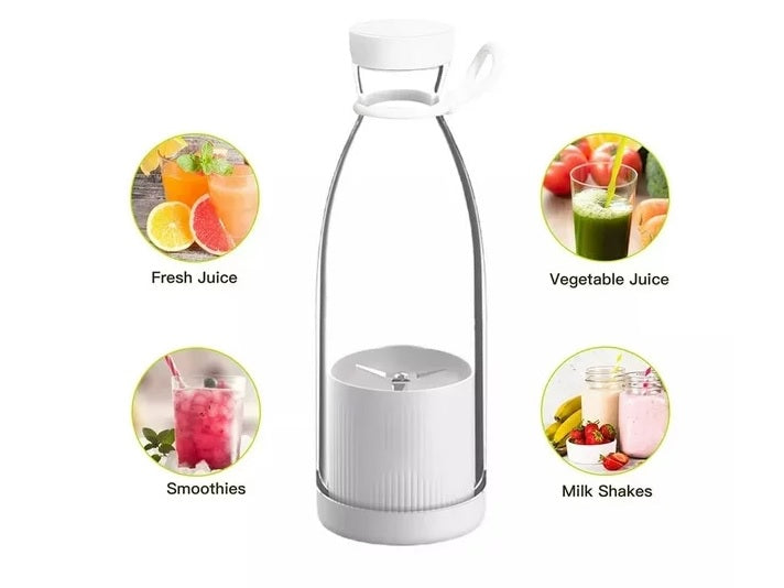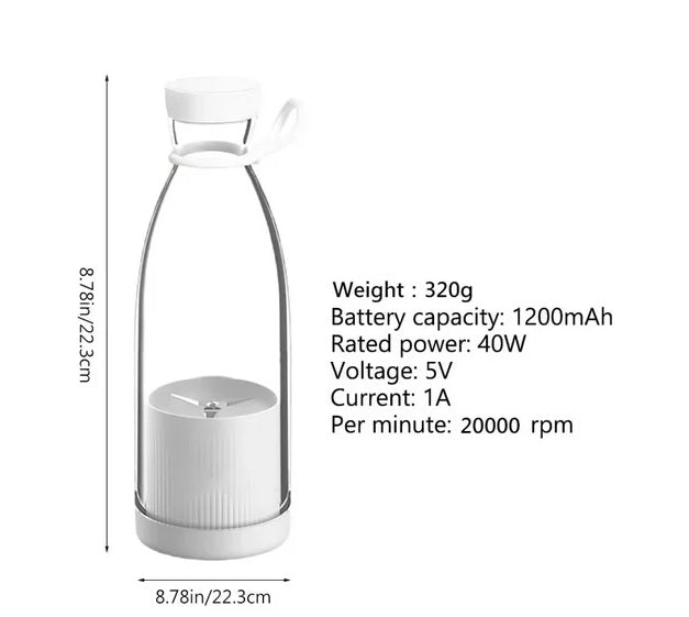 Licuadora de alta calidad Con 4 cuchillas de acero inoxidable 304 extra afiladas y un potente motor de velocidad rápida de 20000r / min, las frutas se pueden triturar de forma rápida y suave. Licuadora multifuncional 350 ml de gran capacidad, adecuada para hacer batidos de una sola porción, batidos, mezclas de jugo, jugo de vegetales, fórmula para bebés, etc. Especificaciones: Color: blanco, rosa (opcional) Material: Metal, gel de sílice y PCTG Potencia: 50W Potencia de entrada: DC 5V 1A Capacidad de la batería: 7.4V-1400mAh Capacidad de la botella: 420ml Tamaño del producto: 23 * 9 *9 cm Peso del producto: 490g / 17.2oz
